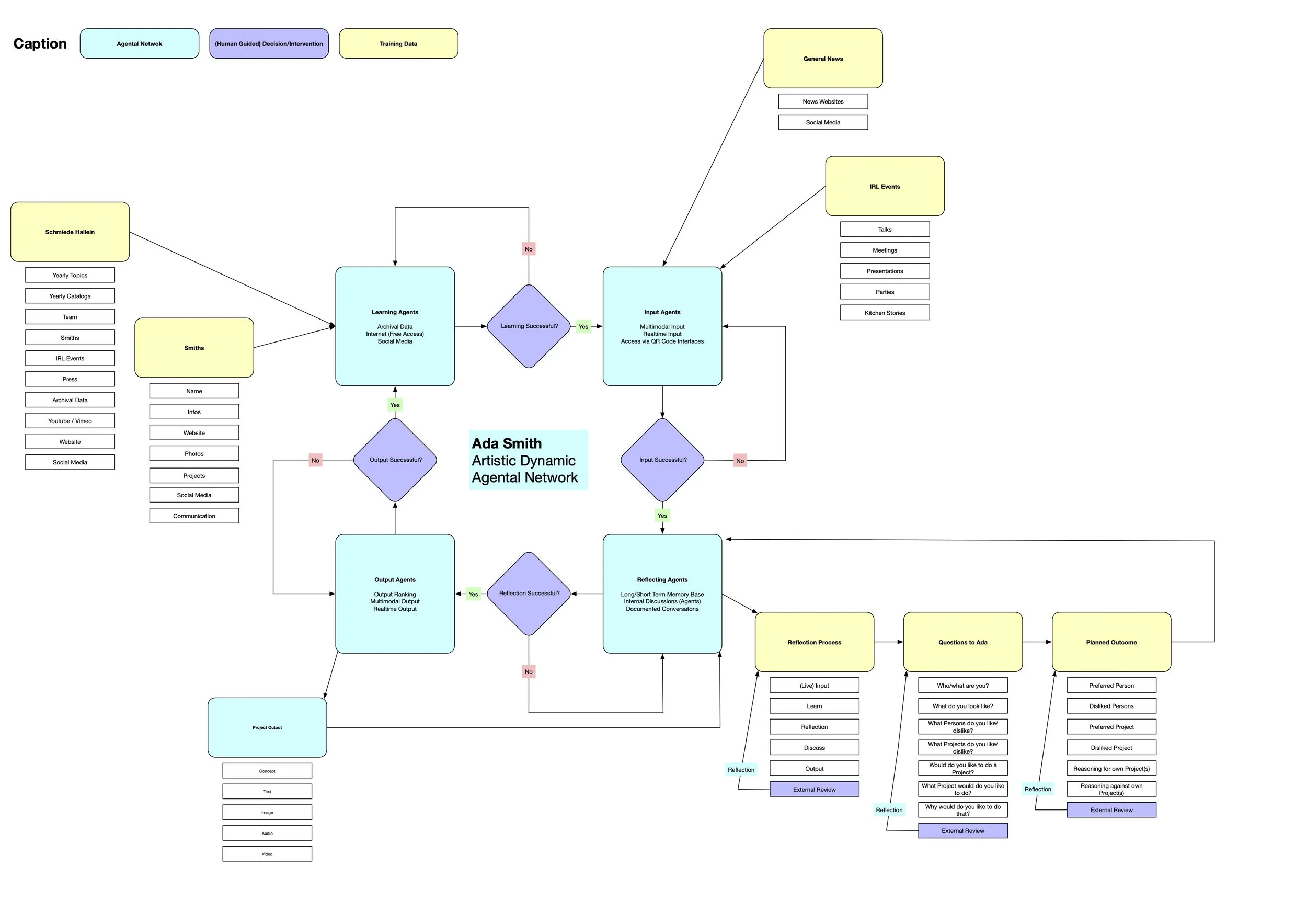 The project "Ada Smith" investigated whether one or more AI agents are capable of assuming the role of a media artist at an art festival like Schmiede Hallein 2025. Ada stands for "Artistic Dynamic Agent" and references, among others, Ada Lovelace, a pioneer of programming. The agent was not intended to merely act as a passive observer, but rather to actively participate in the festival, communicate, and – if possible – develop its own media art project. The project aimed to demonstrate the current state of AI and AI agents in media art, as well as to raise social, artistic, and philosophical questions: Can an AI be creative? Can it build authentic relationships with people? Can it develop sympathies, antipathies, preferences, and tastes, as a human artist might?